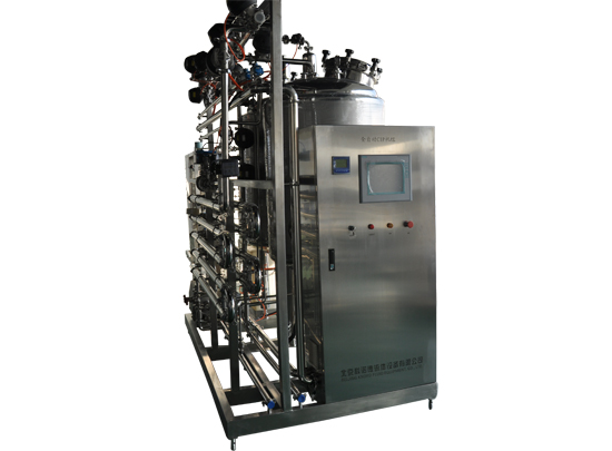 工作原理:根据设置程序(程序可调)由CIP清洗系统自动配制清洗液,经气动控制阀与增压泵、回流泵来完成清洗液的输送及回流循环清洗、排放、回收整个清洗过程。通过电导率、温度控制仪、酸碱计量泵及PLC触摸屏组成的控制系统达到了自动在线清洗。可以对每一道清洗程序时间、流量、电导率进行检测与记录,可打印输出,同时能确保清洗液温度和浓度在相应清洗过程中自动恒定,系统清洗结果由电导率仪自动检测显示。